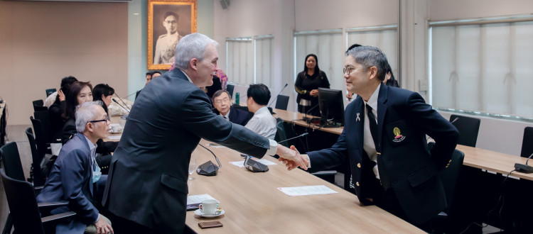 During the visit on February 10–11, 2026, Professor Stewart engaged in strategic meetings with Assoc. Prof. Jiruth Sriratanaban, MD, PhD, Dean of MDCU, and the university’s executive team led by President Prof. Wilert Puriwat, PhD. The discussions focused on expanding joint academic initiatives, digital learning platforms, medical education, and global academic partnerships.