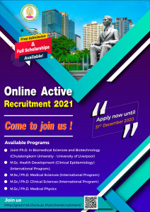 Dear all, Online active recruitment from Faculty of Medicine, Chulalongkorn University is now accepting applicants. The available study programs include: M.Sc./ Ph.D. in Clinical Sciences (International Program) Joint Ph.D. in Biomedical Sciences and Biotechnology (Chulalongkorn University – University of Liverpool) M.Sc./ Ph.D. Medical Sciences (International Program) M.Sc./ Ph.D. Medical Physics... Read More