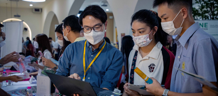 Asst. Prof. Sekh Thanprasertsuk, M.D., Assistant Dean for Student Affairs of Faculty of Medicine, Chulalongkorn University together with Panot Sainamthip, M.D., Lecturer of the Chulalongkorn International Medical Program or CU-MEDi joined the Regent’s University Fair 2022 to provide the information regarding our medical curriculum to the students in Year 9-12 and their parents at Jubilee Building, Regent’s International School Bangkok.
