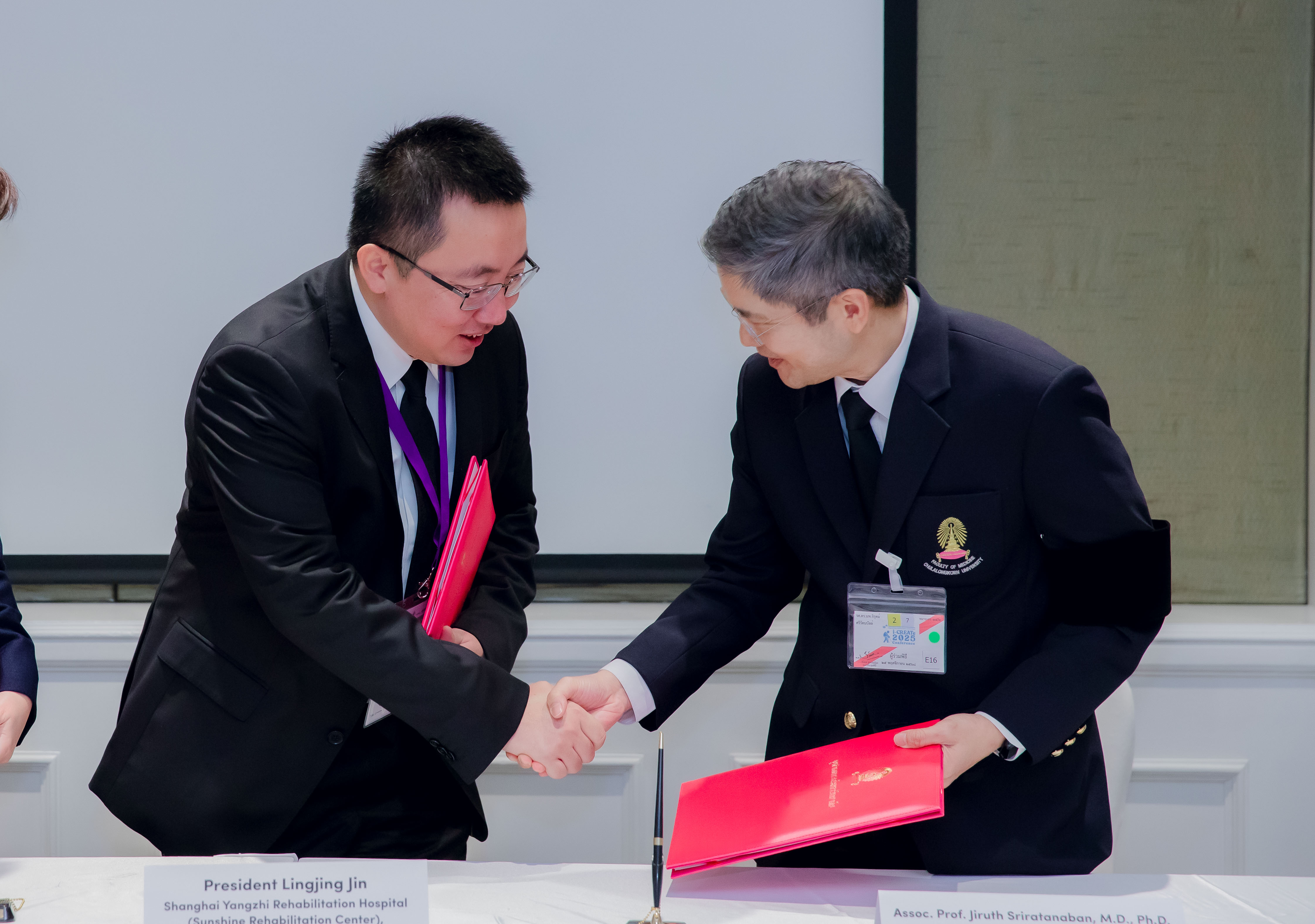 MOU signing between the Faculty of Medicine, Chulalongkorn University, Thai Red Cross Rehabilitation Center and Shanghai Yangzhi Rehabiltation Hospital (Sunshine Rehabilitation Center) on November 25, 2025 at the Athenee Hotel, Bangkok, Thailand.