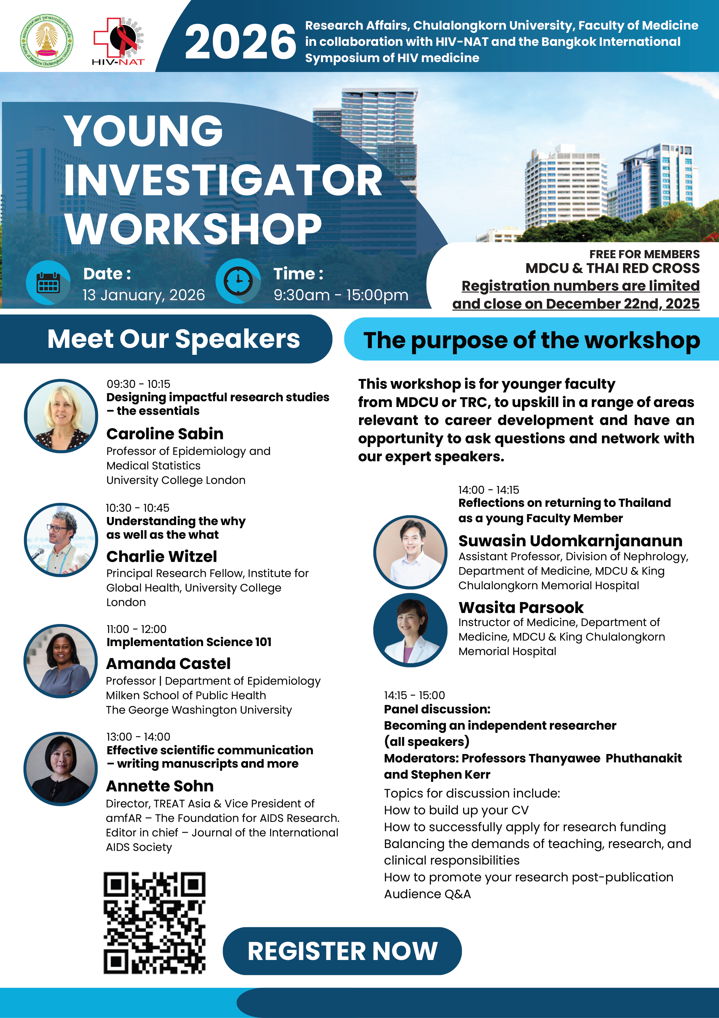 1 Dec 2025 Young Investigator Workshop /Tags#mdcu, chula, chulalongkorn, HIV-NAT, medicine Back to MDCU News