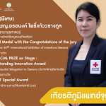 ผศ.(พิเศษ) ดร.พญ.อรอนงค์ โพธิ์แก้ววรางกูล ได้รับรางวัลเหรียญทองเกียรติยศ Gold Medal with the Congratulations of the Jury จาก The 50th International Exhibition of Inventions Geneva (เกียรติภูมิแพทย์จุฬาฯ) Posted on21 มิ.ย. 2025Tags#mdcu, chula, chulalongkorn, medicine, คณะแพทยศาสตร์จุฬาลงกรณ์มหาวิทยาลัย, คณะแพทยศาสตร์จุฬาฯ, คณะแพทย์จุฬาฯ, เกียรติภูมิแพทย์จุฬาฯ, แพทย์จุฬาฯ