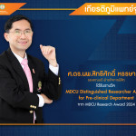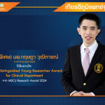 รศ.(พิเศษ) นพ.กฤษฎา วุฒิการณ์ ภาควิชาอายุรศาสตร์ ได้รับรางวัล MDCU Distinguished Young Researcher Award for Clinical Department จาก MDCU Research Award 2024 (เกียรติภูมิแพทย์จุฬาฯ) Posted on06 ก.ย. 2024Tags#mdcu, chula, chulalongkorn, medicine, คณะแพทยศาสตร์จุฬาลงกรณ์มหาวิทยาลัย, คณะแพทยศาสตร์จุฬาฯ, คณะแพทย์จุฬาฯ, เกียรติภูมิแพทย์จุฬาฯ, แพทย์จุฬาฯ