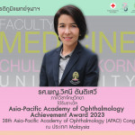 คณะแพทยศาสตร์ จุฬาฯ ขอแสดงความยินดีกับ รศ.พญ.วิศนี ตันติเสวี ภาควิชาจักษุวิทยา ได้รับรางวัล Asia-Pacific Academy of Ophthalmology Achievement Award 2023 Posted on14 มี.ค. 2023Tags#mdcu, chula, chulalongkorn, medicine, คณะแพทยศาสตร์จุฬาลงกรณ์มหาวิทยาลัย, คณะแพทยศาสตร์จุฬาฯ, คณะแพทย์จุฬาฯ, เกียรติภูมิแพทย์จุฬาฯ, แพทย์จุฬาฯ
