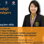 🎉 คณะแพทยศาสตร์ จุฬาฯ ขอแสดงความยินดีกับ ดร.พญ.จิรดา ศรีเงิน ได้รับรางวัลชนะเลิศ MDS Video Challenge หัวข้อ Immune checkpoint inhibitor associated striatal encephalitis presenting with subacute progressive parkinsonism. Posted on28 ก.ย. 2022Tags#mdcu, chula, chulalongkorn, medicine, คณะแพทยศาสตร์จุฬาลงกรณ์มหาวิทยาลัย, คณะแพทยศาสตร์จุฬาฯ, คณะแพทย์จุฬาฯ, เกียรติภูมิแพทย์จุฬาฯ, แพทย์จุฬาฯ