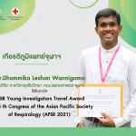 Dr. Dhammika Leshan Wannigama ได้รับรางวัล APSR Young Investigators Travel Award The 25th Congress of the Asian Pacific Society of Respirology (APSR 2021) (เกียรติภูมิแพทย์จุฬาฯ) Posted on21 ธ.ค. 2021Tags#mdcu, chula, chulalongkorn, medicine, คณะแพทยศาสตร์จุฬาลงกรณ์มหาวิทยาลัย, คณะแพทยศาสตร์จุฬาฯ, คณะแพทย์จุฬาฯ, เกียรติภูมิแพทย์จุฬาฯ, แพทย์จุฬาฯ