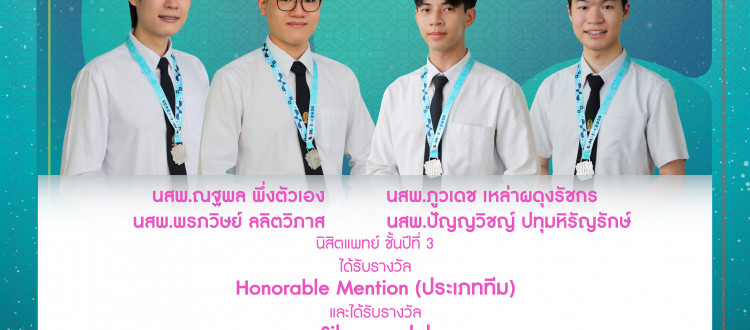 21 มิ.ย. 2025 Honorable Mention (ประเภททีม) และได้รับรางวัล Silver medal ในการแข่งขันตอบปัญหา Siriraj International Medical Microbiology, Parasitology and Immunology Competition; 14th SIMPIC 2025 (เกียรติภูมิแพทย์จุฬาฯ)) /Tags#mdcu, chula, chulalongkorn, medicine, คณะแพทยศาสตร์จุฬาลงกรณ์มหาวิทยาลัย, คณะแพทยศาสตร์จุฬาฯ, คณะแพทย์จุฬาฯ, เกียรติภูมิแพทย์จุฬาฯ, แพทย์จุฬาฯ กลับไปหน้าข่าวประชาสัมพันธ์