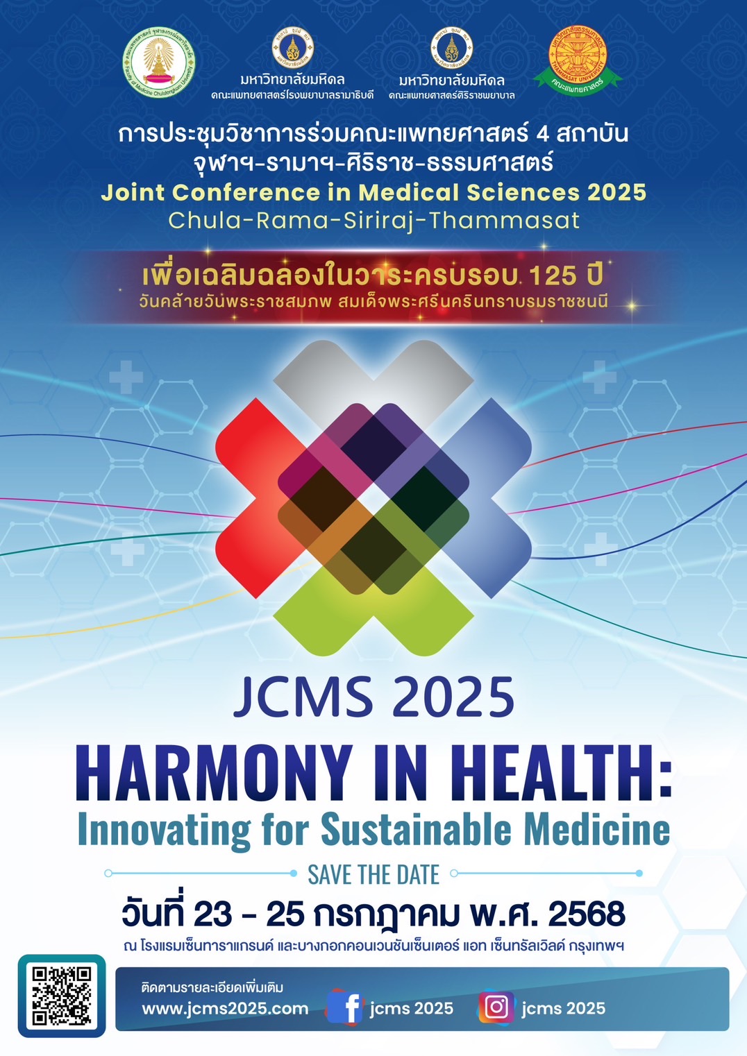 ✨️ การประชุมวิชาการร่วม คณะแพทยศาสตร์ 4 สถาบัน จุฬาฯ-รามาฯ-ศิริราช-ธรรมศาสตร์ Joint Conference in Medical Sciences 2025 Chula-Rama-Siriraj-Thammasat