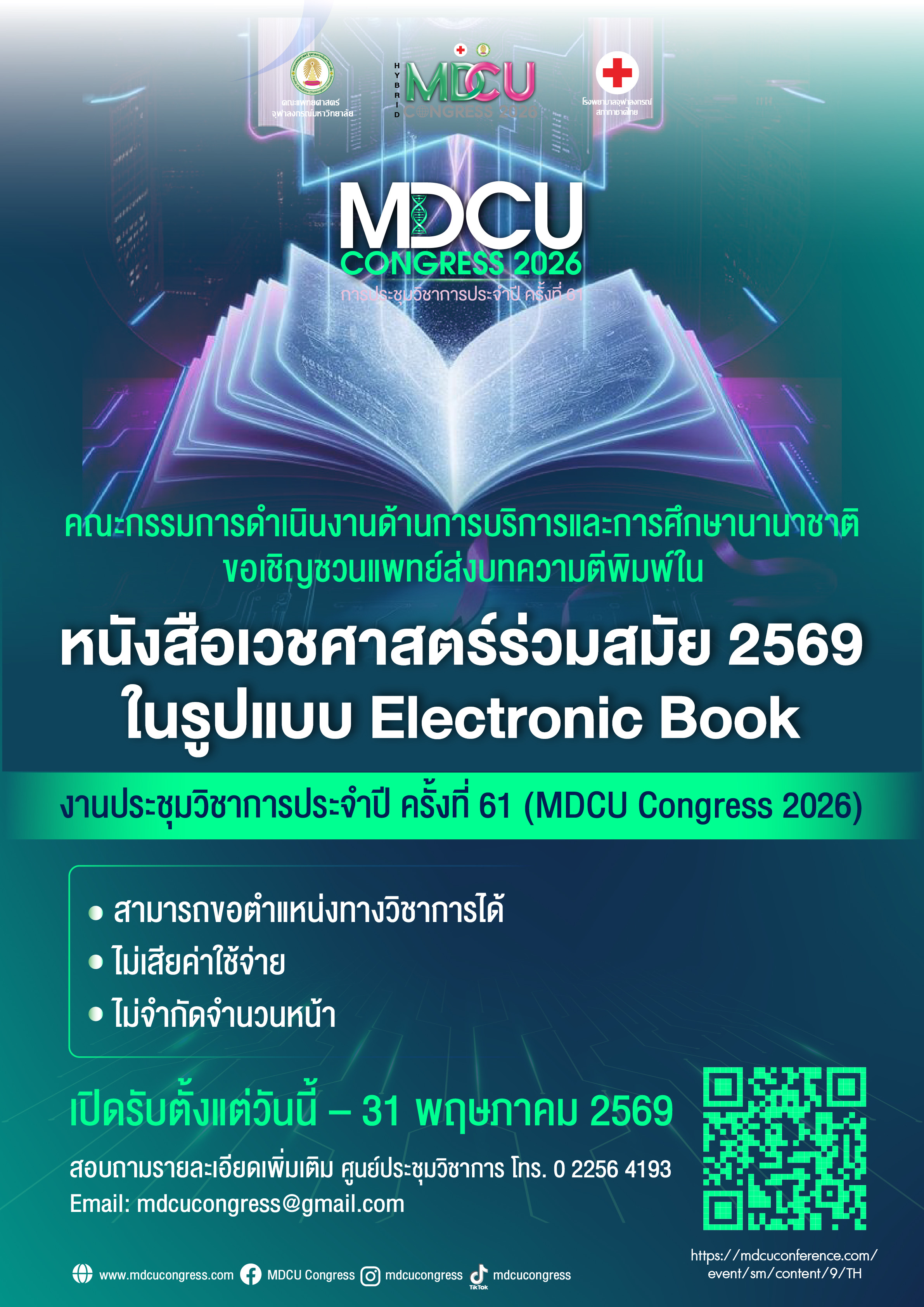 ขอเชิญชวนแพทย์ส่งบทความตีพิมพ์ใน “หนังสือเวชศาสตร์ร่วมสมัย 2569” ✨MDCU CONGRESS 2026✨