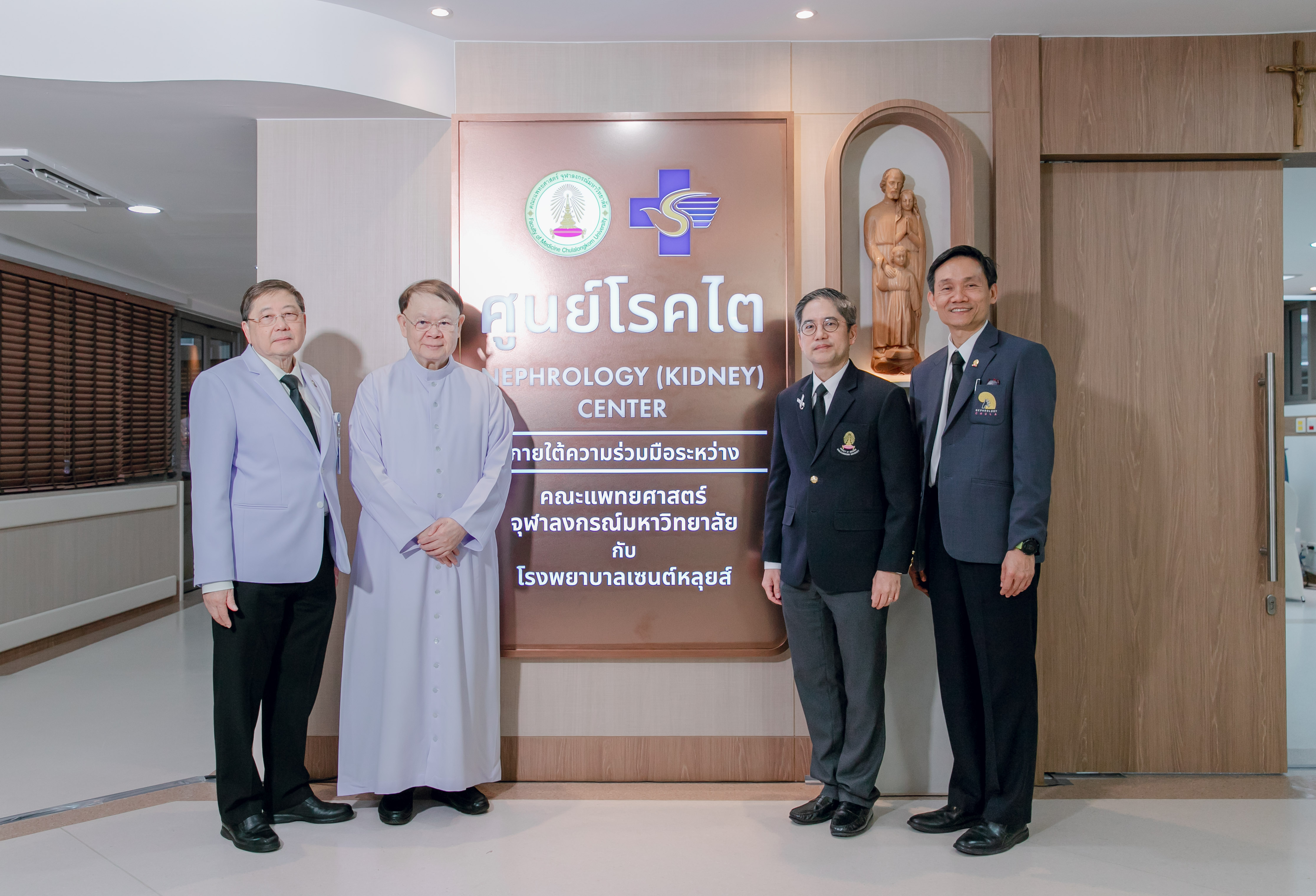 บาทหลวงชัยยะ กิจสวัสดิ์ ประธานกรรมการบริหาร โรงพยาบาลเซนต์หลุยส์ และ รศ.ดร.นพ.จิรุตม์ ศรีรัตนบัลล์ คณบดี คณะแพทยศาสตร์ จุฬาลงกรณ์มหาวิทยาลัย ร่วมกันเปิดศูนย์โรคไต โรงพยาบาลเซนต์หลุยส์ ซึ่งเกิดจากความร่วมมือในพิธีลงนามบันทึกข้อตกลงระหว่างคณะแพทยศาสตร์ จุฬาลงกรณ์มหาวิทยาลัย และโรงพยาบาลเซนต์หลุยส์ เมื่อปี 2567 จากเจตนารมณ์ร่วมกันของคณะผู้บริหารและผู้แทนของทั้งสองสถาบัน ที่เล็งเห็นความสำคัญของการให้บริการทางการแพทย์ที่มีมาตรฐานสากล การใช้ทรัพยากรอย่างมีประสิทธิภาพ คุ้มค่า และก่อให้เกิดประโยชน์สูงสุดต่อผู้ป่วย