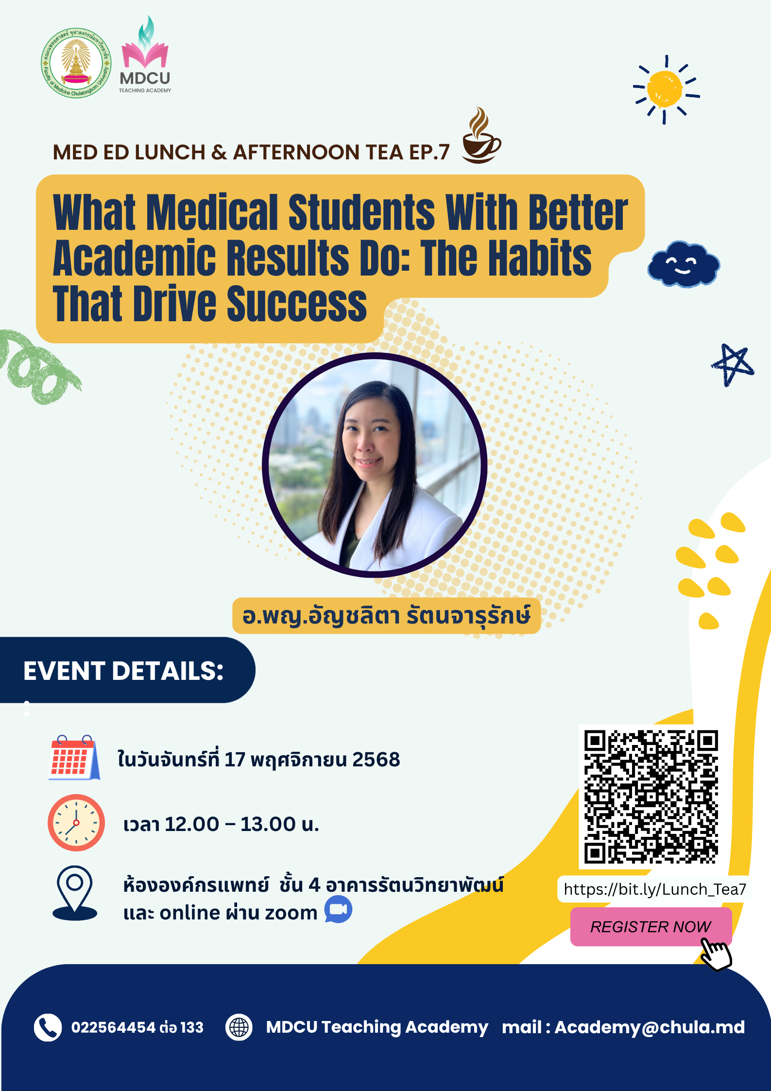 📌MDCU Teaching Academy ขอเชิญเข้าร่วมกิจกรรม Med Ed Lunch and Afternoon Tea EP.7