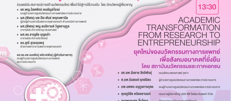 การเสวนาหัวข้อ “Academic Transformation; From Research to Entrepreneurship”