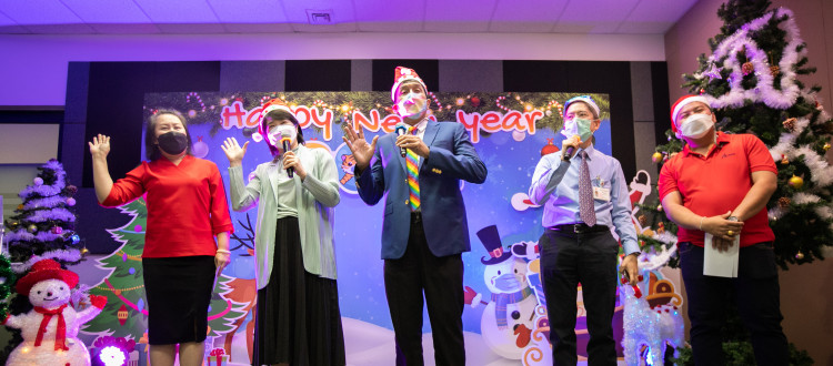 รศ.นพ.ฉันชาย สิทธิพันธุ์ คณบดี คณะแพทยศาสตร์ จุฬาลงกรณ์มหาวิทยาลัย กล่าวอวยพรและร่วมจับสลากรางวัลให้แก่เจ้าหน้าที่ ผ่านทางแอปพลิเคชัน Zoom Meeting ในงาน MERRY CHRISTMAS & HAPPY NEW YEAR 2022 สุขสันต์ปีใหม่ สไตล์ New Normal จากนั้น นำทีมคณะผู้บริหารไปสวัสดีปีใหม่ และมอบของขวัญให้แก่หน่วยงาน และภาควิชาต่างๆ