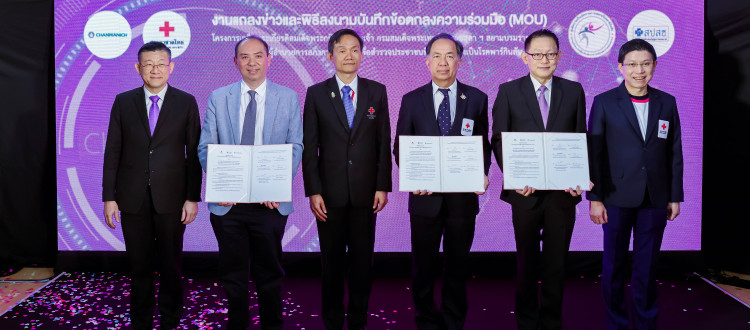 งานแถลงข่าวโครงการเฉลิมพระเกียรติสมเด็จพระกนิษฐาธิราชเจ้า กรมสมเด็จพระเทพรัตนราชสุดา ฯ สยามบรมราชกุมารี อุปนายิกาผู้อำนวยการสภากาชาดไทย เพื่อสำรวจประชาชนที่มีความเสี่ยงเป็นโรคพาร์กินสัน และพิธีลงนามทำบันทึกข้อตกลงความร่วมมือ เรื่อง การสนับสนุนการคัดกรองผู้ที่มีความเสี่ยงโรคพาร์กินสันโดยใช้ Digital Platform ระหว่าง สำนักงานบริหารกิจการเหล่ากาชาด สภากาชาดไทย โรงพยาบาลจุฬาลงกรณ์ ศูนย์ความเป็นเลิศทางการแพทย์โรคพาร์กินสัน และกลุ่มโรคความเคลื่อนไหวผิดปกติ สำนักงานหลักประกันสุขภาพแห่งชาติ (สปสช.) และ บริษัท จันวาณิชย์ จำกัด
