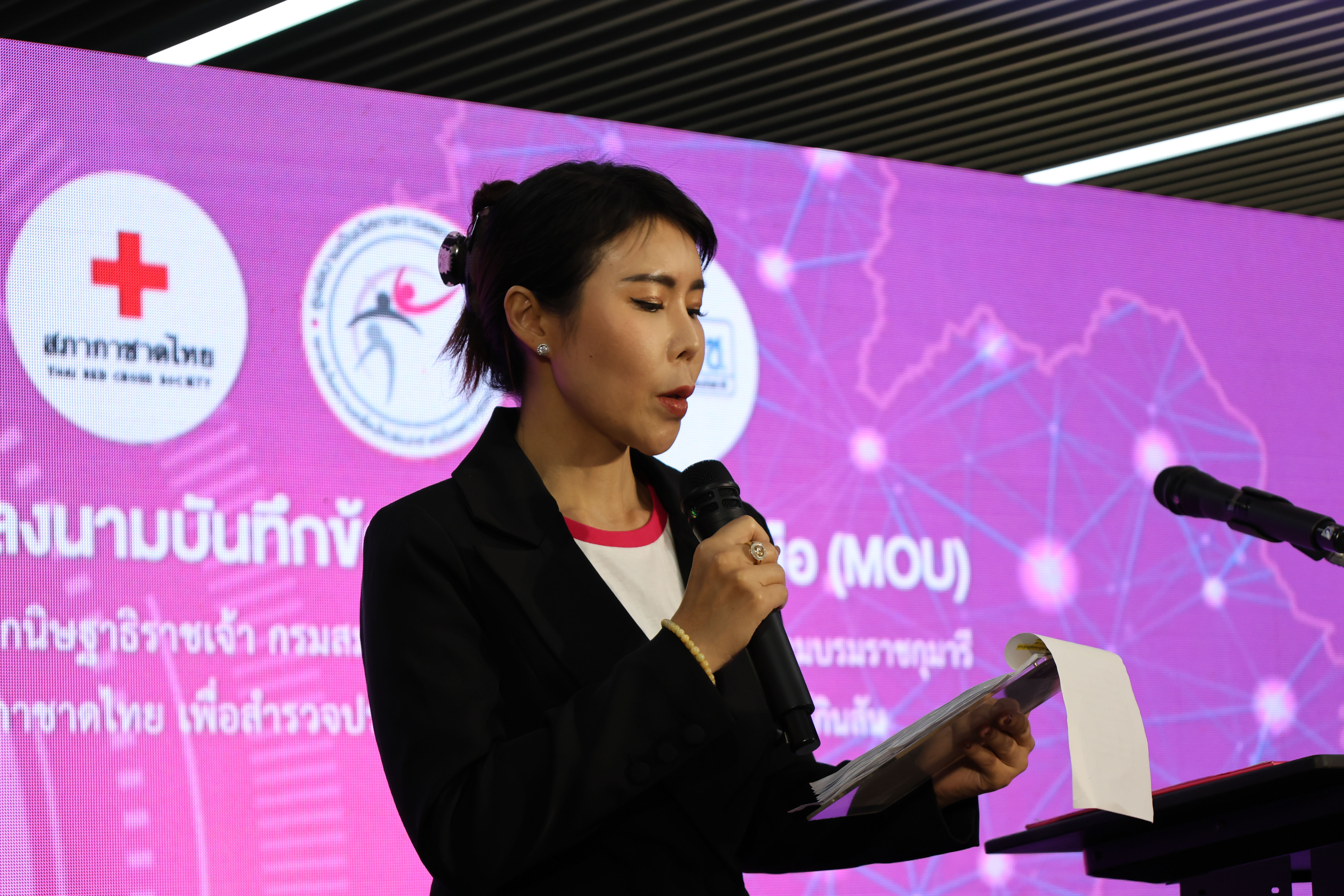 งานแถลงข่าวโครงการเฉลิมพระเกียรติสมเด็จพระกนิษฐาธิราชเจ้า กรมสมเด็จพระเทพรัตนราชสุดา ฯ สยามบรมราชกุมารี อุปนายิกาผู้อำนวยการสภากาชาดไทย เพื่อสำรวจประชาชนที่มีความเสี่ยงเป็นโรคพาร์กินสัน และพิธีลงนามทำบันทึกข้อตกลงความร่วมมือ เรื่อง การสนับสนุนการคัดกรองผู้ที่มีความเสี่ยงโรคพาร์กินสันโดยใช้ Digital Platform ระหว่าง สำนักงานบริหารกิจการเหล่ากาชาด สภากาชาดไทย โรงพยาบาลจุฬาลงกรณ์ ศูนย์ความเป็นเลิศทางการแพทย์โรคพาร์กินสัน และกลุ่มโรคความเคลื่อนไหวผิดปกติ สำนักงานหลักประกันสุขภาพแห่งชาติ (สปสช.) และ บริษัท จันวาณิชย์ จำกัด