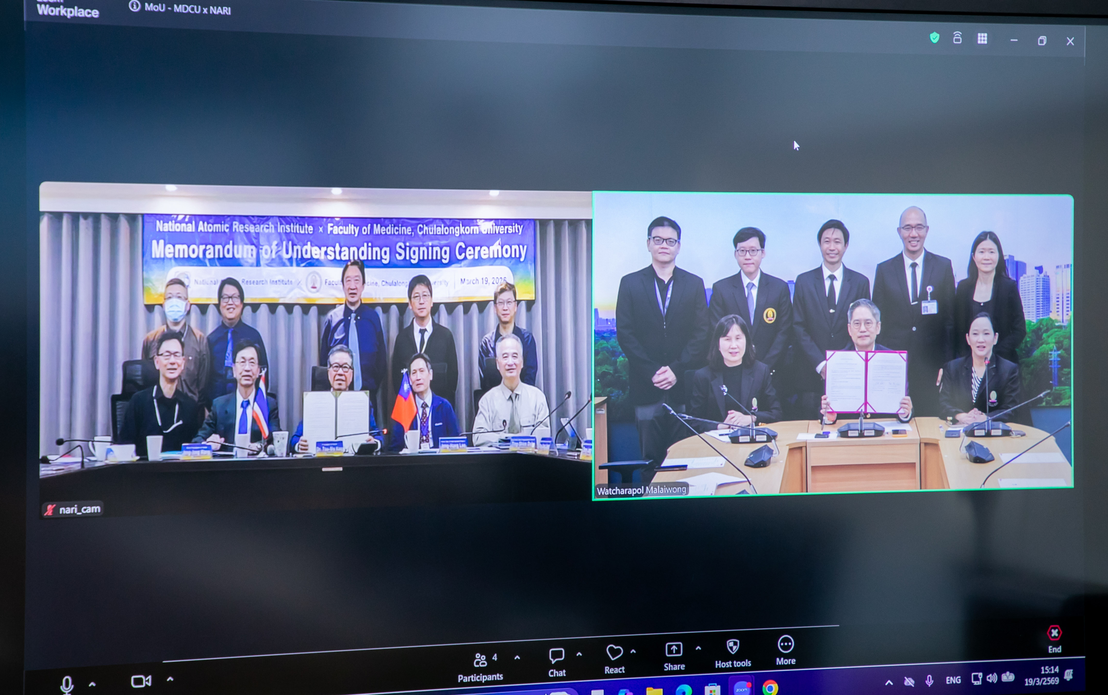 พิธีลงนามบันทึกข้อตกลงความร่วมมือ (MoU) ระหว่างคณะแพทยศาสตร์ จุฬาฯ และ NARI ประเทศไต้หวัน เพื่อพัฒนางานวิจัยและนวัตกรรมรังสีเภสัชภัณฑ์