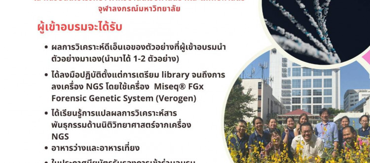 ขอเชิญเข้าร่วมโครงการอบรมเชิงปฏิบัติการ “การวิเคราะห์สารพันธุกรรมด้านนิติวิทยาศาสตร์ด้วยเครื่อง NEXT-GENERATION SEQUENCING (NGS)” ครั้งที่ 1