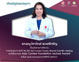 คณะแพทยศาสตร์ จุฬาฯ ขอแสดงความยินดีกับ รศ.พญ.วิลาวัณย์ พวงศรีเจริญ เป็นประธานการจัดงานการประชุมนานาชาติ the 8th Asia Cornea Society Biennial Scientific Meeting Posted on06 ธ.ค. 2022Tags#mdcu, chula, chulalongkorn, medicine, คณะแพทยศาสตร์จุฬาลงกรณ์มหาวิทยาลัย, คณะแพทยศาสตร์จุฬาฯ, คณะแพทย์จุฬาฯ, เกียรติภูมิแพทย์จุฬาฯ, แพทย์จุฬาฯ