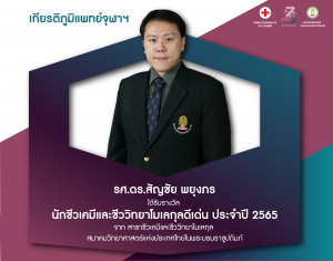 คณะแพทยศาสตร์ จุฬาฯ ขอแสดงความยินดีกับ รศ.ดร.สัญชัย พยุงภร ได้รับรางวัล นักชีวเคมีและชีววิทยาโมเลกุลดีเด่น ประจำปี 2565 Posted on12 ต.ค. 2022Tags#mdcu, chula, chulalongkorn, medicine, คณะแพทยศาสตร์จุฬาลงกรณ์มหาวิทยาลัย, คณะแพทยศาสตร์จุฬาฯ, คณะแพทย์จุฬาฯ, เกียรติภูมิแพทย์จุฬาฯ, แพทย์จุฬาฯ