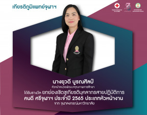 🎉คณะแพทยศาสตร์ จุฬาฯ ขอแสดงความยินดีกับ นางยุวดี บูรณศิลป์ หัวหน้าหน่วยพัฒนาคุณภาพการศึกษา ได้รับรางวัล ยกย่องเชิดชูเกียรติบุคลากรสายปฏิบัติการ คนดี ศรีจุฬาฯ ประจำปี 2565 ประเภทหัวหน้างาน Posted on18 ต.ค. 2022Tags#mdcu, chula, chulalongkorn, medicine, คณะแพทยศาสตร์จุฬาลงกรณ์มหาวิทยาลัย, คณะแพทยศาสตร์จุฬาฯ, คณะแพทย์จุฬาฯ, เกียรติภูมิแพทย์จุฬาฯ, แพทย์จุฬาฯ
