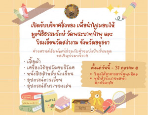 ✨ฝ่ายศานติธรรม และฝ่ายพัฒนาสังคมและบำเพ็ญประโยชน์ สโมสรนิสิตคณะแพทยศาสตร์ จุฬาลงกรณ์มหาวิทยาลัย ขอเชิญชวนทุกท่านร่วมบริจาคสิ่งของ✨ Posted on19 ต.ค. 2022Tags#mdcu, chula, chulalongkorn, medicine, คณะแพทยศาสตร์จุฬาลงกรณ์มหาวิทยาลัย, คณะแพทยศาสตร์จุฬาฯ, คณะแพทย์จุฬาฯ, แพทย์จุฬาฯ 📦เพื่อนำไปบริจาคให้มูลนิธิธรรมรักษ์ วัดพระบาทน้ำพุ และโรงเรียนวัดสง่างาม จังหวัดอยุธยา ในโครงการค่ายศานต์ส้มพัฒน์ และค่ายแบ่งปันวันหยุด 📝ซึ่งทุกท่านสามารถร่วมบริจาคของได้ตั้งแต่บัดนี้เ... Read More