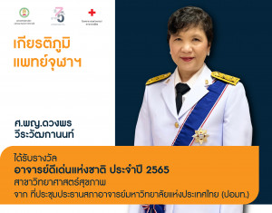 🎉 คณะแพทยศาสตร์ จุฬาฯ ขอแสดงความยินดีกับ ศ.พญ.ดวงพร วีระวัฒกานนท์ ได้รับรางวัล อาจารย์ดีเด่นแห่งชาติ ประจำปี 2565 สาขาวิทยาศาสตร์สุขภาพ Posted on23 ก.ย. 2022Tags#mdcu, chula, chulalongkorn, medicine, คณะแพทยศาสตร์จุฬาลงกรณ์มหาวิทยาลัย, คณะแพทยศาสตร์จุฬาฯ, คณะแพทย์จุฬาฯ, แพทย์จุฬาฯ