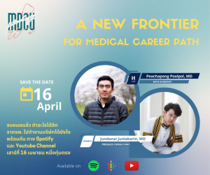 A new frontier in medical career path จบหมอแล้ว ทำอะไรได้อีก ย้ายจากรพ.ไปทำงานบริษัทได้ยังไง (MDCUPodcast EP.11) Posted on16 เม.ย. 2022Tags#mdcu, chula, chulalongkorn, health tech, MDCUPodcast, medicine, คณะแพทยศาสตร์จุฬาลงกรณ์มหาวิทยาลัย, คณะแพทยศาสตร์จุฬาฯ, คณะแพทย์จุฬาฯ, งานอื่นสำหรับแพทย์, ลาออก, เปลี่ยนสายอาชีพ, แพทย์, แพทย์จบใหม่, แพทย์จุฬาฯ กับ นพ.พิชญ์พงศ์ พูลผล จาก H Lab และ นพ.จุลดนัย จุลละครินทร์ จาก Comarch ฟังพร้อมกันได้ในวันเสาร์ที่ 16 เมษายนนี้ 19.00 น. ที่ MDCU Podcast EP.11 #MDCUpodcast #MDCU Spotify https://spoti.fi/3zOMB2V Go... Read More