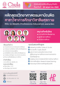 ผู้ที่สนใจสมัครเข้าศึกษาต่อระดับปริญญาโท ในหลักสูตรวิทยาศาสตรมหาบัณฑิต สาขาวิชาการศึกษาวิชาชีพสุขภาพ MSc in Health Professions Education (สหสาขาวิชา) Posted on11 เม.ย. 2022Tags#mdcu, chula, chulalongkorn, HPEChula, medicine, คณะแพทยศาสตร์จุฬาลงกรณ์มหาวิทยาลัย, คณะแพทยศาสตร์จุฬาฯ, คณะแพทย์จุฬาฯ, แพทย์จุฬาฯ คณะแพทยศาสตร์ จุฬาลงกรณ์มหาวิทยาลัย ขอเชิญอาจารย์ในวิชาชีพสุขภาพ ผู้บริหารการศึกษา นักวิชาการศึกษา และผู้ที่สนใจสมัครเข้าศึกษาต่อระดับปริญญาโท ในหลักสูตรวิทยาศาสตรมหาบัณฑิต สาขาวิชาการศึกษาวิชา... Read More