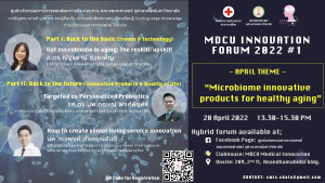 MDCU INNOVATION FORUM หัวข้อ Microbiome Innovative Products for Healthy aging Posted on14 เม.ย. 2022Tags#mdcu, chula, chulalongkorn, innovation, MDCU INNOVATION FORUM, medicine, คณะแพทยศาสตร์จุฬาลงกรณ์มหาวิทยาลัย, คณะแพทยศาสตร์จุฬาฯ, คณะแพทย์จุฬาฯ, แพทย์จุฬาฯ