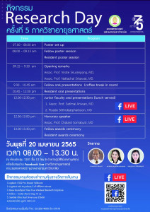 Research Day ครั้งที่ 5 ภาควิชาอายุรศาสตร์ คณะแพทยศาสตร์ จุฬาฯ Posted on14 เม.ย. 2022Tags#mdcu, chula, chulalongkorn, medicine, ResearchDay, คณะแพทยศาสตร์จุฬาลงกรณ์มหาวิทยาลัย, คณะแพทยศาสตร์จุฬาฯ, คณะแพทย์จุฬาฯ, แพทย์จุฬาฯ