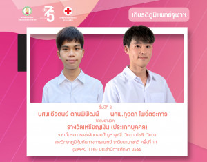 รางวัล เหรียญเงิน (ประเภทบุคคล) จากโครงการแข่งขันตอบปัญหาจุลชีววิทยา ปรสิตวิทยาและวิทยาภูมิคุ้มกันทางการแพทย์ ระดับนานาชาติ ครั้งที่ 11 (SIMPIC 11th) ประจำปีการศึกษา 2565 (เกียรติภูมิแพทย์จุฬาฯ) Posted on25 เม.ย. 2022Tags#mdcu, chula, chulalongkorn, medicine, คณะแพทยศาสตร์จุฬาลงกรณ์มหาวิทยาลัย, คณะแพทยศาสตร์จุฬาฯ, คณะแพทย์จุฬาฯ, เกียรติภูมิแพทย์จุฬาฯ, แพทย์จุฬาฯ