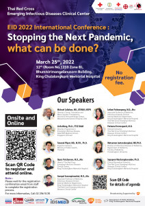 ขอเชิญแพทย์ พยาบาล บุคลากรทางการแพทย์ เข้ารับฟังบรรยายงานประชุมวิชาการ “โรคอุบัติใหม่และโรคอุบัติซ้ำ (EID 2022 International Conference: Stopping the Next Pandemic, what can be done?)” ในวันที่ 25 มีน... Read More