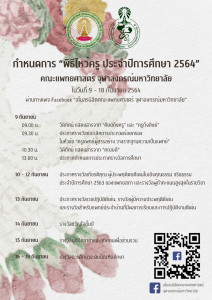 “พิธีไหว้ครู ประจำปีการศึกษา 2564” คณะแพทยศาสตร์ จุฬาลงกรณ์มหาวิทยาลัย Posted on08 ก.ย. 2021Tags#mdcu, chula, chulalongkorn, medicine, คณะแพทยศาสตร์จุฬาลงกรณ์มหาวิทยาลัย, คณะแพทยศาสตร์จุฬาฯ, คณะแพทย์จุฬาฯ, แพทย์จุฬาฯ จัดขึ้นในวันที่ 9 – 18 กันยายน 2564 โดยมีกิจกรรมดังนี้ 9 ก.ย. 64 – กิจกรรมไหว้ครู ในรูปแบบวิดิทัศน์ 10-18 ก.ย. 64 – การประกาศรางวัลการศึกษา ประจำปีการศึกษา 2563 ผ่านทางเพจ : สโมสรนิ... Read More