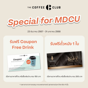 The Coffee Club Special Promotion Posted on20 มี.ค. 2025Tags#mdcu, chula, chulalongkorn, medicine, คณะแพทยศาสตร์จุฬาลงกรณ์มหาวิทยาลัย, คณะแพทยศาสตร์จุฬาฯ, คณะแพทย์จุฬาฯ, แพทย์จุฬาฯ ⚡️ พิเศษ เฉพาะวันที่ 23 ธ.ค. 2567 – 31 ม.ค. 2568 รับฟรี❗️ คูปองฟรีเครื่องดื่ม เมื่อซื้ออาหารและเครื่องครบ 150 บาทขึ้นไป รับฟรี❗️ ตั๋วหนัง 1 ใบ เมื่อซื้ออาหารและเครื่องครบ 200 บาทขึ้นไป วันนี้ที่ THE C... Read More