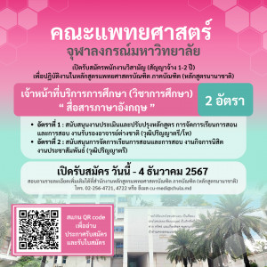แพทย์จุฬาฯ แสดงความยินดีสถาบันวิจัยโลหะและวัสดุ จุฬาฯ ครบรอบ 38 ปี วันพุธที่ 13 พฤศจิกายน พ.ศ. 2567: 09.00 น.: ห้องประชุม ชั้น 11 อาคารวิทยาลัยปิโตรเลียมและปิโตรเคมีสถาบันวิจัยโลหะและวัสดุ จุฬาลงกรณ์ม... Read More