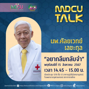 MDCU TALK 🎤✨ “อยากลืมกลับจำ” โดย นพ.ศัลยเวทย์ เลขะกุล Posted on14 ส.ค. 2024Tags#mdcu, 60thMDCUCONGRESS2024, chula, chulalongkorn, MDCUCONGRESS2024, MDCUTALK, medicine, คณะแพทยศาสตร์จุฬาลงกรณ์มหาวิทยาลัย, คณะแพทยศาสตร์จุฬาฯ, คณะแพทย์จุฬาฯ, แพทย์จุฬาฯ