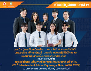 รางวัลชนะเลิศ การแข่งขันตอบปัญหาสรีรวิทยาระดับนานาชาติ ครั้งที่ 20 (20th Inter-Medical School Physiology Quiz, IMSPQ 2024) (เกียรติภูมิแพทย์จุฬาฯ) Posted on22 ส.ค. 2024Tags#mdcu, chula, chulalongkorn, medicine, คณะแพทยศาสตร์จุฬาลงกรณ์มหาวิทยาลัย, คณะแพทยศาสตร์จุฬาฯ, คณะแพทย์จุฬาฯ, เกียรติภูมิแพทย์จุฬาฯ, แพทย์จุฬาฯ