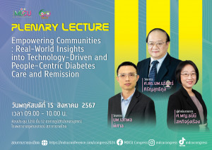 PLENARY LECTURE📜✨ “Empowering Communities : Real-World Insights into Technology- Driven and People-Centric Diabetes Care and Remission” Posted on14 ส.ค. 2024Tags#mdcu, 60thMDCUCONGRESS2024, chula, chulalongkorn, MDCUCONGRESS2024, MDCUTALK, medicine, คณะแพทยศาสตร์จุฬาลงกรณ์มหาวิทยาลัย, คณะแพทยศาสตร์จุฬาฯ, คณะแพทย์จุฬาฯ, แพทย์จุฬาฯ