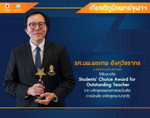 รศ.นพ.พรเทพ อังศุวัชรากร ภาควิชากายวิภาคศาสตร์ ได้รับรางวัล Students’ Choice Award for Outstanding Teacher (เกียรติภูมิแพทย์จุฬาฯ) Posted on11 ก.ค. 2024Tags#mdcu, chula, chulalongkorn, medicine, คณะแพทยศาสตร์จุฬาลงกรณ์มหาวิทยาลัย, คณะแพทยศาสตร์จุฬาฯ, คณะแพทย์จุฬาฯ, เกียรติภูมิแพทย์จุฬาฯ, แพทย์จุฬาฯ