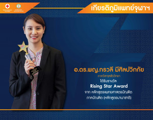 อ.ดร.พญ.กรวลี มีศิลปวิกกัย ภาควิชาจุลชีววิทยา ได้รับรางวัล Rising Star Award (เกียรติภูมิแพทย์จุฬาฯ) Posted on11 ก.ค. 2024Tags#mdcu, chula, chulalongkorn, medicine, คณะแพทยศาสตร์จุฬาลงกรณ์มหาวิทยาลัย, คณะแพทยศาสตร์จุฬาฯ, คณะแพทย์จุฬาฯ, เกียรติภูมิแพทย์จุฬาฯ, แพทย์จุฬาฯ