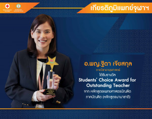 อ.พญ.ฐิตา เจียสกุล ภาควิชาอายุรศาสตร์ ได้รับรางวัล Students’ Choice Award for Outstanding Teacher (เกียรติภูมิแพทย์จุฬาฯ) Posted on11 ก.ค. 2024Tags#mdcu, chula, chulalongkorn, medicine, คณะแพทยศาสตร์จุฬาลงกรณ์มหาวิทยาลัย, คณะแพทยศาสตร์จุฬาฯ, คณะแพทย์จุฬาฯ, เกียรติภูมิแพทย์จุฬาฯ, แพทย์จุฬาฯ