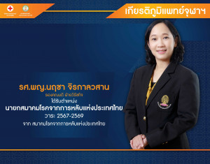 รศ.พญ.นฤชา จิรกาลวสาน รองคณบดี ฝ่ายวิรัชกิจ ได้รับตำแหน่งนายกสมาคมโรคจากการหลับแห่งประเทศไทย วาระ 2567-2569 (เกียรติภูมิแพทย์จุฬาฯ) Posted on11 ก.ค. 2024Tags#mdcu, chula, chulalongkorn, medicine, คณะแพทยศาสตร์จุฬาลงกรณ์มหาวิทยาลัย, คณะแพทยศาสตร์จุฬาฯ, คณะแพทย์จุฬาฯ, เกียรติภูมิแพทย์จุฬาฯ, แพทย์จุฬาฯ