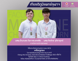 นสพ.ปัณณธร โอภาสมงคลชัย และนสพ.จิรภัทร รุจิรายุกต์ ภาควิชากายวิภาคศาสตร์ ได้รับรางวัลประเภทบุคคล คะแนน MCQ เหรียญทอง Posted on13 ก.พ. 2024Tags#mdcu, chula, chulalongkorn, medicine, คณะแพทยศาสตร์จุฬาลงกรณ์มหาวิทยาลัย, คณะแพทยศาสตร์จุฬาฯ, คณะแพทย์จุฬาฯ, เกียรติภูมิแพทย์จุฬาฯ, แพทย์จุฬาฯ