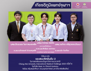 นสพ.ภาคภพ เลขวัต นสพ.ปัณณธร โอภาสมงคลชัย และนสพ.วรภัทร ศรีสุวรรณวัฒนา อาจารย์ที่ปรึกษา ศ.ดร.นพ.สิทธิพร แอกทอง อ.นพ.ณภัทรพงศ์ ธำรงสกุลศิริ และอ.นพ.ธนัท ทับเที่ยง ภาควิชากายวิภาคศาสตร์ ได้รับรางวัลรองชนะเลิศอันดับ 2 Posted on13 ก.พ. 2024Tags#mdcu, chula, chulalongkorn, medicine, คณะแพทยศาสตร์จุฬาลงกรณ์มหาวิทยาลัย, คณะแพทยศาสตร์จุฬาฯ, คณะแพทย์จุฬาฯ, เกียรติภูมิแพทย์จุฬาฯ, แพทย์จุฬาฯ
