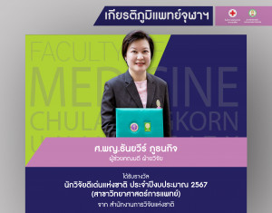 ศ.พญ.ธันยวีร์ ภูธนกิจ ผู้ช่วยคณบดี ฝ่ายวิจัย ได้รับรางวัลนักวิจัยดีเด่นแห่งชาติ ประจำปีงบประมาณ 2567 (สาขาวิทยาศาสตร์การแพทย์) Posted on09 ก.พ. 2024Tags#mdcu, chula, chulalongkorn, medicine, คณะแพทยศาสตร์จุฬาลงกรณ์มหาวิทยาลัย, คณะแพทยศาสตร์จุฬาฯ, คณะแพทย์จุฬาฯ, เกียรติภูมิแพทย์จุฬาฯ, แพทย์จุฬาฯ