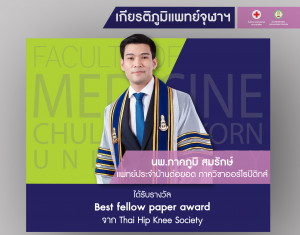 นพ.ภาคภูมิ สมรักษ์ แพทย์ประจำบ้านต่อยอด ภาควิชาออร์โธปิดิกส์ ได้รับรางวัล Best fellow paper award จาก Thai Hip Knee Society (เกียรติภูมิแพทย์จุฬาฯ) Posted on19 ธ.ค. 2023Tags#mdcu, chula, chulalongkorn, medicine, คณะแพทยศาสตร์จุฬาลงกรณ์มหาวิทยาลัย, คณะแพทยศาสตร์จุฬาฯ, คณะแพทย์จุฬาฯ, เกียรติภูมิแพทย์จุฬาฯ, แพทย์จุฬาฯ