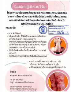 เปิดรับสมัครผู้เข้าร่วมวิจัยโครงการนำร่องการศึกษาประสิทธิผลและความปลอดภัยของการรักษาด้วยแสงอาทิตย์ธรรมชาติจากโมเดลคาดการณ์รังสีอัลตราไวโอเลตในโรคสะเก็ดเงินในกรุงเทพมหานคร Posted on15 ธ.ค. 2023Tags#mdcu, chula, chulalongkorn, medicine, คณะแพทยศาสตร์จุฬาลงกรณ์มหาวิทยาลัย, คณะแพทยศาสตร์จุฬาฯ, คณะแพทย์จุฬาฯ, แพทย์จุฬาฯ