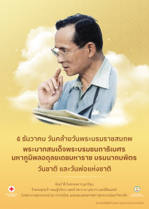 ๕ ธันวาคม วันคล้ายวันพระบรมราชสมภพ พระบาทสมเด็จพระบรมชนกาธิเบศร มหาภูมิพลอดุลยเดชมหาราช บรมนาถบพิตร Posted on04 ธ.ค. 2023Tags#mdcu, chula, chulalongkorn, medicine, คณะแพทยศาสตร์จุฬาลงกรณ์มหาวิทยาลัย, คณะแพทยศาสตร์จุฬาฯ, คณะแพทย์จุฬาฯ, แพทย์จุฬาฯ ๕ ธันวาคม วันคล้ายวันพระบรมราชสมภพ พระบาทสมเด็จพระบรมชนกาธิเบศร มหาภูมิพลอดุลยเดชมหาราช บรมนาถบพิตร วันชาติ และวันพ่อแห่งชาติ น้อมรำลึกในพระมหากรุณาธิคุณ ข้าพระพุทธเจ้า คณะผู้บริหาร แพทย์ พยาบาล บุคลา... Read More