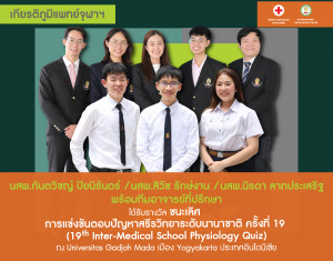 รางวัล ชนะเลิศ การแข่งขันตอบปัญหาสรีรวิทยาระดับนานาชาติ ครั้งที่ 19 (เกียรติภูมิแพทย์จุฬาฯ) Posted on12 ก.ย. 2023Tags#mdcu, chula, chulalongkorn, medicine, คณะแพทยศาสตร์จุฬาลงกรณ์มหาวิทยาลัย, คณะแพทยศาสตร์จุฬาฯ, คณะแพทย์จุฬาฯ, เกียรติภูมิแพทย์จุฬาฯ, แพทย์จุฬาฯ