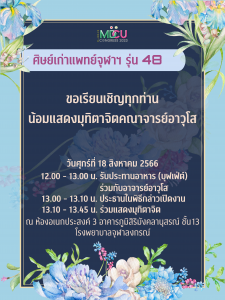 ขอเชิญเข้าร่วมการประชุมวิชาการประจำปี ครั้งที่ 59 คณะแพทยศาสตร์ จุฬาลงกรณ์มหาวิทยาลัย และโรงพยาบาลจุฬาลงกรณ์ สภากาชาดไทย MDCU CONGRESS 2023 “Practical Strategies and Innovative Approaches for I... Read More